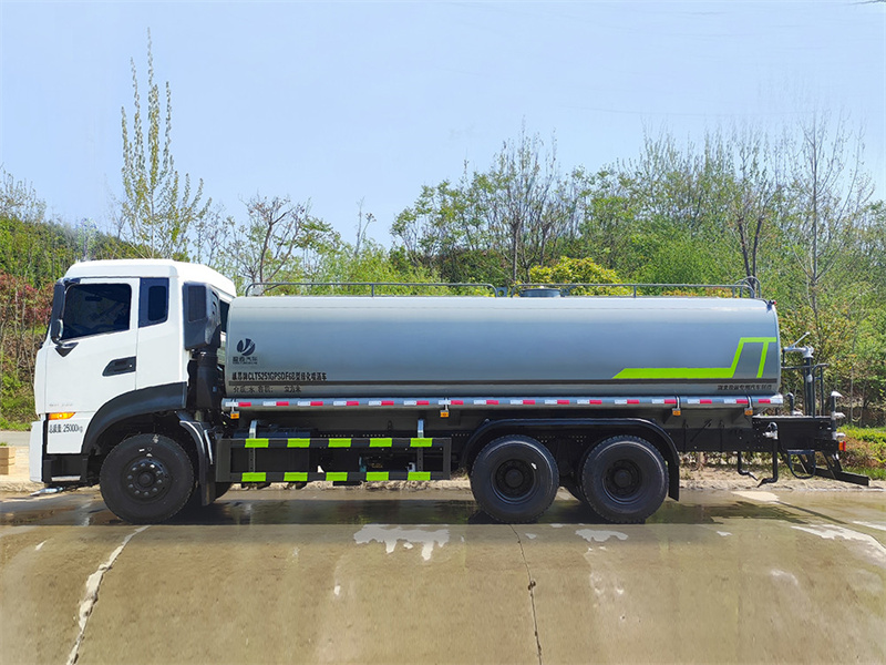 東風天龍18噸灑水車產品標配前噴(鴨嘴)、后沖、后灑、側噴、后置式工作 平臺,平臺上配置綠化水炮(可 360°旋轉,既可以調成柱狀,也可 以調成霧狀,更可以調成直沖狀、大雨、中雨、小雨、毛毛雨),配 備優質大功率專用灑水泵(可自吸自排,可從河里或池塘抽水到罐體), 取力器,雜物過濾網,消防接口,自流球閥系統、取力器、球閥、濾網 均為國家標準產品,主管道加粗,法蘭墊、法蘭盤加厚,大通徑球閥。 整體具備性能優良安全可靠、效率高、流量大、維修方便等特點