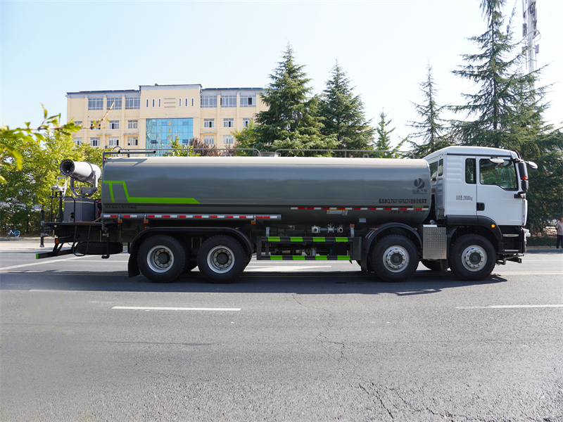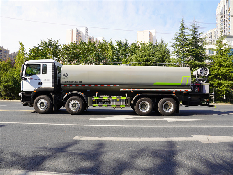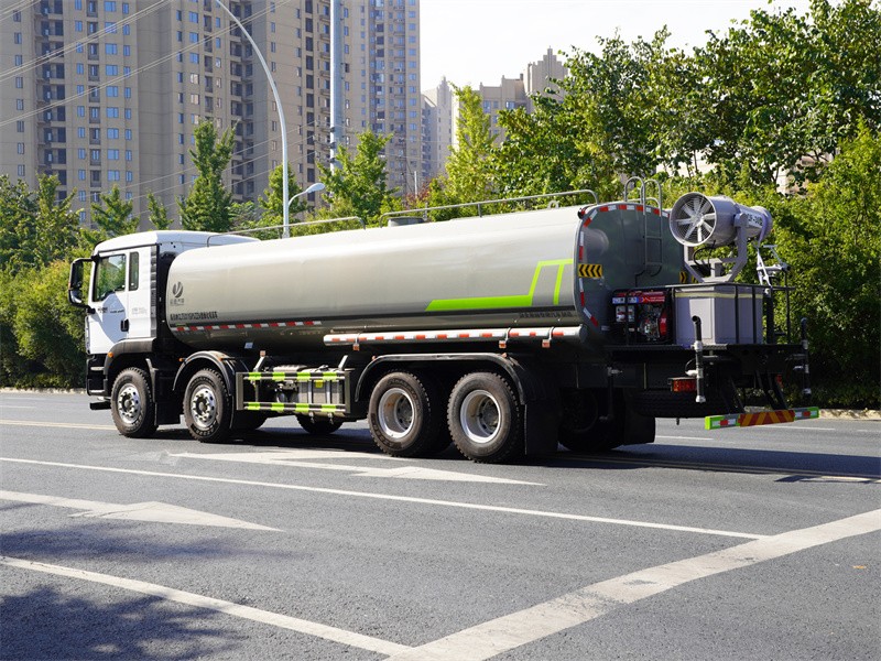 重汽25噸霧炮灑水車該車主要用于城鄉(xiāng)園林綠化噴灑作業(yè).主要裝置為罐體及噴灑裝置;罐體總?cè)萘?19.67立方米;罐體有效容積:18.74立方米;罐體外形尺寸(長×長軸×短軸)(mm):7300×2450×1650.僅采用軸距(mm):1800+3800+1350改裝.側(cè)、后防護材料均為:Q235碳鋼,連接方式均為:螺栓連接,后部防護截面尺寸(mm):120×50,后部防護離地高度(mm):490.ABS系統(tǒng)控制器生產(chǎn)企業(yè)/型號為采埃孚商用車系統(tǒng)(青島)有限公司/4460046300;隨底盤選裝駕駛室,選裝噴霧裝置樣式,選裝自動球閥安裝位置,選裝弧形噴灑裝置,選裝箭頭燈裝置,選裝大工作平臺,選裝前部不帶電子霧炮.選裝電子炮裝置樣式.當(dāng)前部選裝電子炮裝置時,前伸為500mm,整車長度為11560mm,11750mm.隨底盤選裝限速裝置,限速89km/h.,選裝油箱電瓶位置,選裝車輛后部高位花灑裝置,選裝方形罐口及罐口位置,選裝尾部自流口裝置.