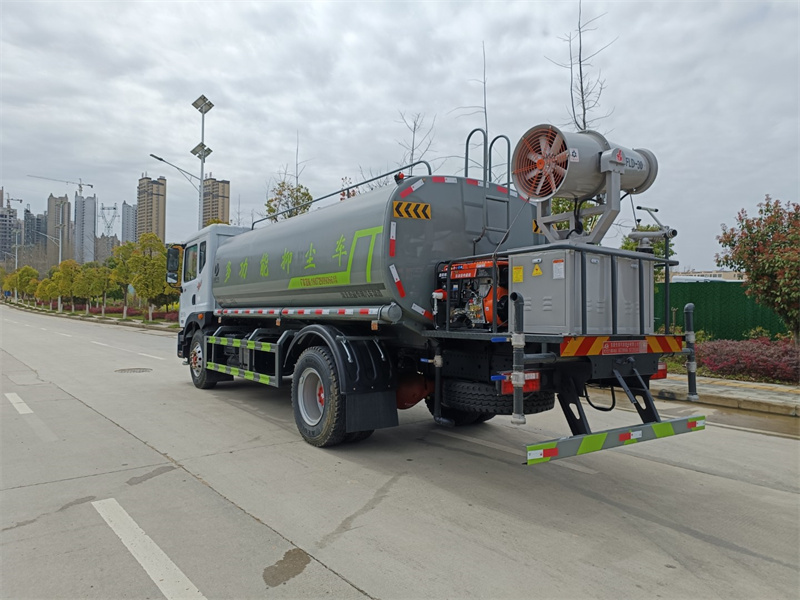東風(fēng)15-16噸霧炮灑水車產(chǎn)品標(biāo)配前噴(鴨嘴)、后沖、后灑、側(cè)噴、后置式工作 平臺(tái),平臺(tái)上配置綠化水炮(可 360°旋轉(zhuǎn),既可以調(diào)成柱狀,也可 以調(diào)成霧狀,更可以調(diào)成直沖狀、大雨、中雨、小雨、毛毛雨),配 備優(yōu)質(zhì)大功率專用灑水泵(可自吸自排,可從河里或池塘抽水到罐體), 取力器,雜物過(guò)濾網(wǎng),消防接口,自流球閥系統(tǒng)、取力器、球閥、濾網(wǎng) 均為國(guó)家標(biāo)準(zhǔn)產(chǎn)品,主管道加粗,法蘭墊、法蘭盤加厚,大通徑球閥。 整體具備性能優(yōu)良安全可靠、效率高、流量大、維修方便等特點(diǎn)