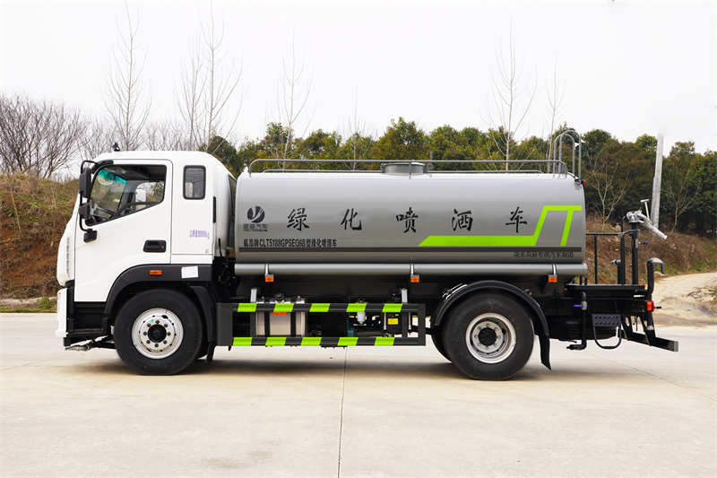 福田歐航12噸灑水車產品標配前噴(鴨嘴)、后沖、后灑、側噴、后置式工作 平臺,平臺上配置綠化水炮(可 360°旋轉,既可以調成柱狀,也可 以調成霧狀,更可以調成直沖狀、大雨、中雨、小雨、毛毛雨),配 備優質大功率專用灑水泵(可自吸自排,可從河里或池塘抽水到罐體), 取力器,雜物過濾網,消防接口,自流球閥系統、取力器、球閥、濾網 均為國家標準產品,主管道加粗,法蘭墊、法蘭盤加厚,大通徑球閥。 整體具備性能優良安全可靠、效率高、流量大、維修方便等特點。