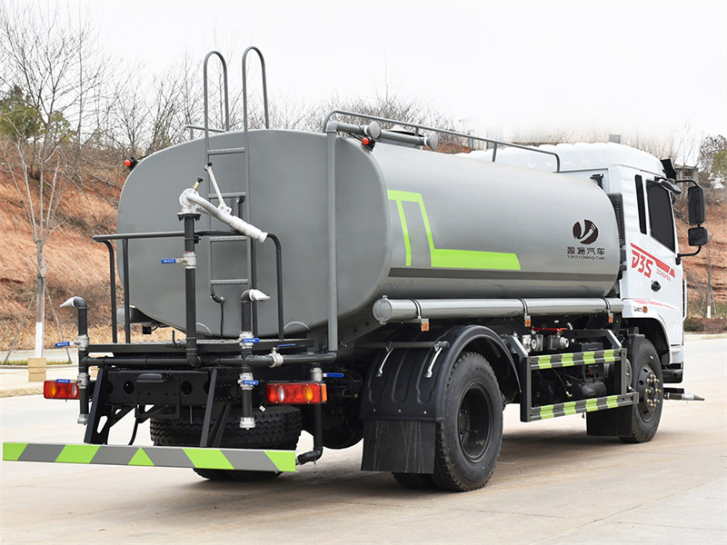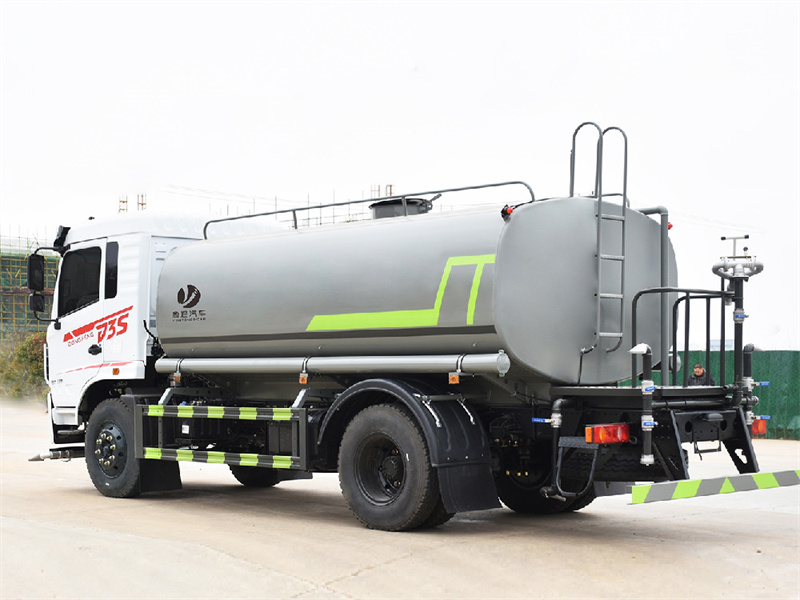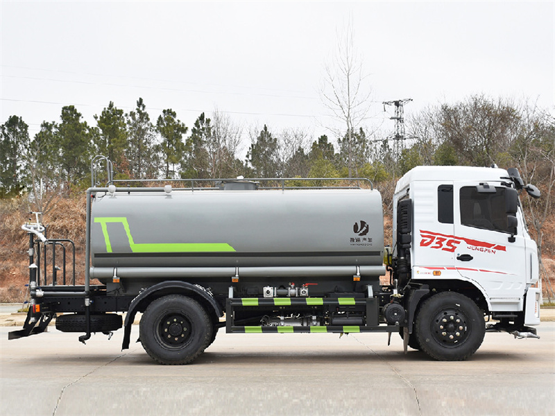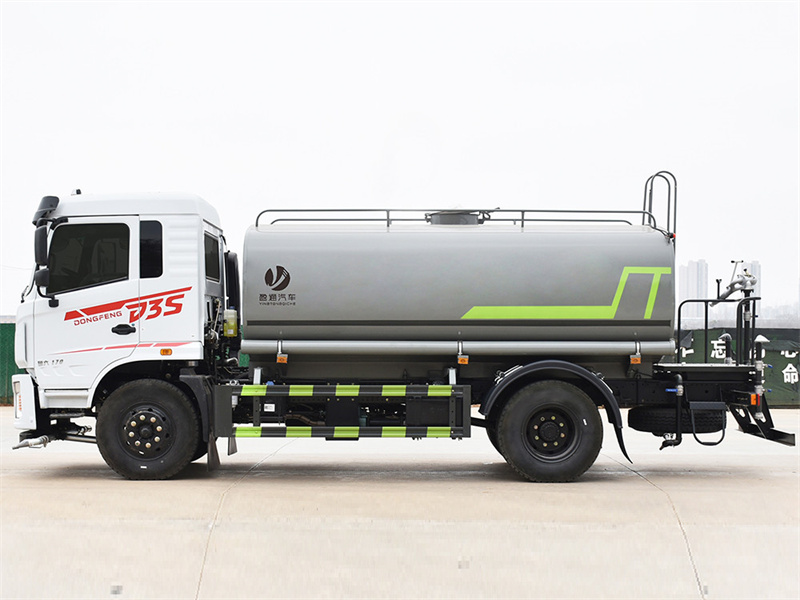 東風12噸灑水車產品標配前噴(鴨嘴)、后沖、后灑、側噴、后置式工作 平臺,平臺上配置綠化水炮(可 360°旋轉,既可以調成柱狀,也可 以調成霧狀,更可以調成直沖狀、大雨、中雨、小雨、毛毛雨),配 備優質大功率專用灑水泵(可自吸自排,可從河里或池塘抽水到罐體), 取力器,雜物過濾網,消防接口,自流球閥系統、取力器、球閥、濾網 均為國家標準產品,主管道加粗,法蘭墊、法蘭盤加厚,大通徑球閥。 整體具備性能優良安全可靠、效率高、流量大、維修方便等特點。