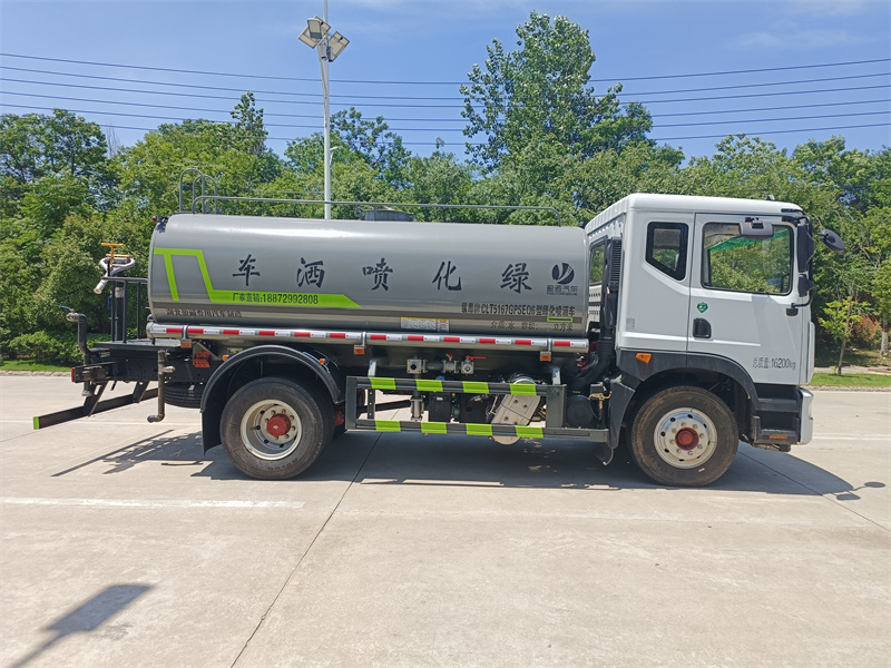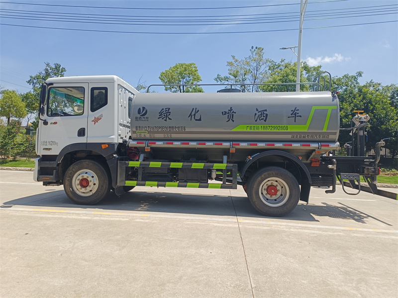灑水車產(chǎn)品簡述:縱昂牌 CLT5167GPSEQ6 型綠化噴灑車標(biāo)配前噴(鴨嘴)、后對沖、 后灑、側(cè)噴、后置式工作平臺,平臺上配置綠化水炮可 360°旋轉(zhuǎn),既可以調(diào) 成柱狀,也可以調(diào)成霧狀,配備優(yōu)質(zhì)大功率專用灑水泵,可自吸自排,可從河 里或池塘抽水到罐體,取力器,雜物過濾網(wǎng),消防接口,自流球閥系統(tǒng)、取力 器、球閥、濾網(wǎng)均為國家標(biāo)準(zhǔn)產(chǎn)品,主管道加粗,法蘭墊、法蘭盤加厚,大通徑 球閥。整體具備性能優(yōu)良安全可靠、效率高、流量大、維修方便等特點(diǎn)